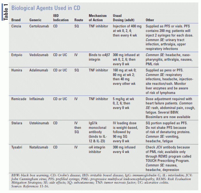 • Adalimumab (Humira): This biologic targets tumor necrosis factor (TNF) and is one of the most commonly used treatments for Crohn’s disease.